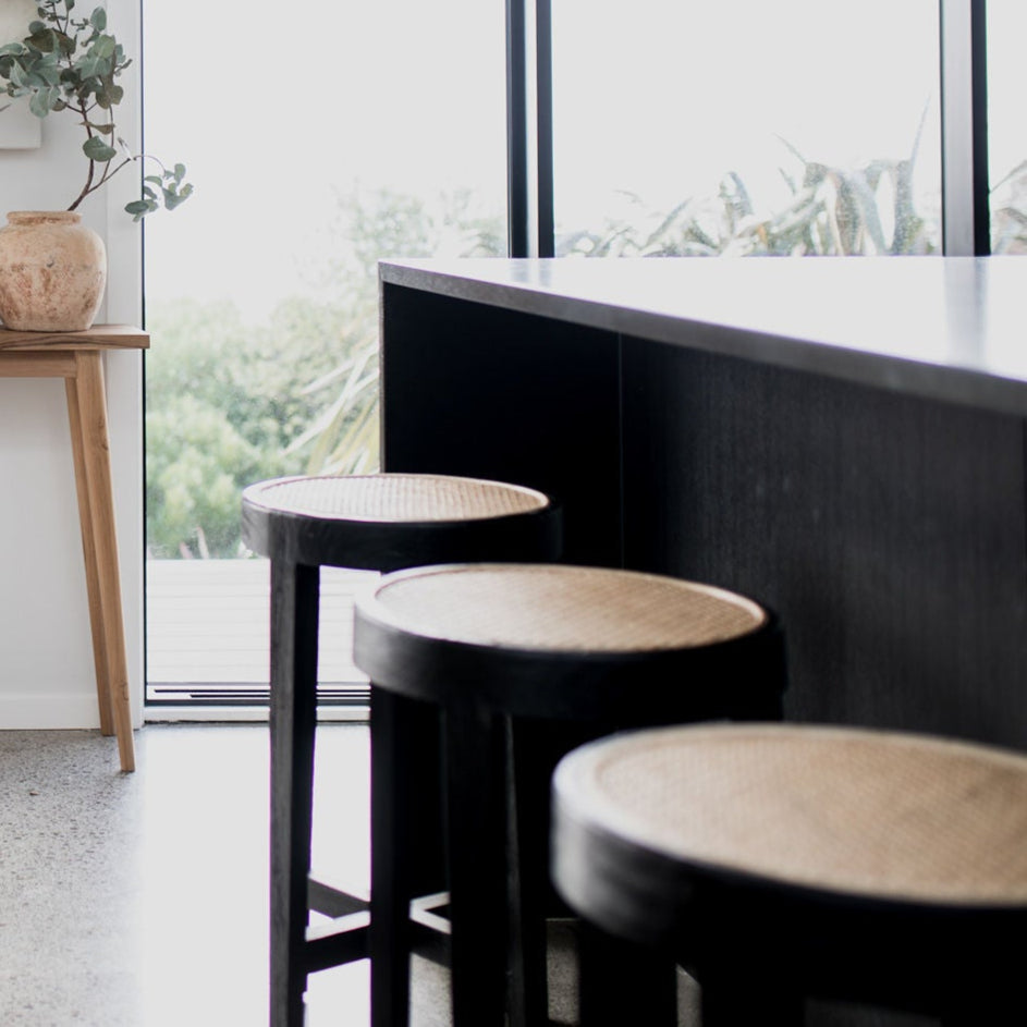 Designed by Corcovado for those who love a minimal aesthetic with a little coastal charm. These black bar stools are perfect for kitchen islands, at 65cm high. They are lightweight and easily moveable, whilst still being sturdy.