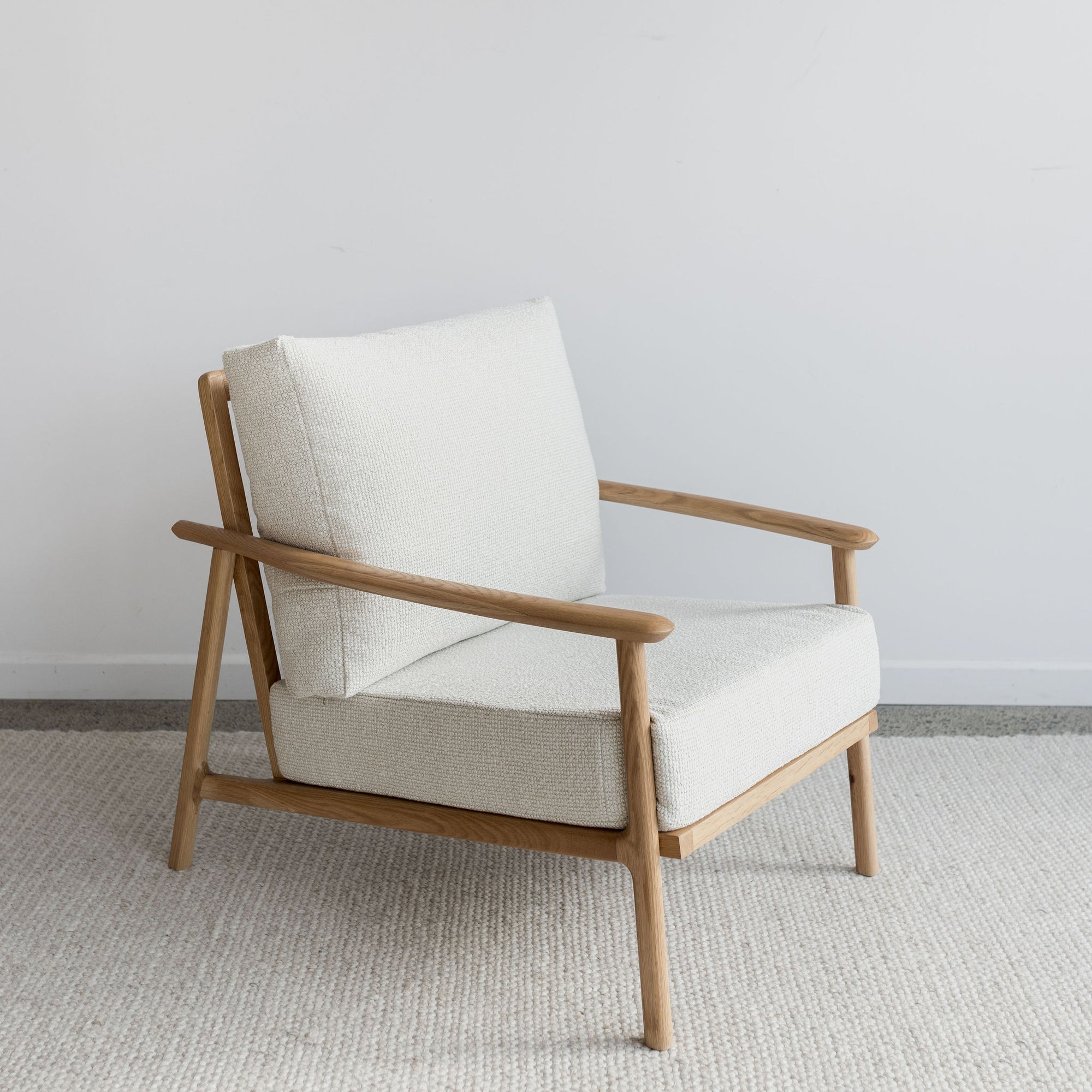 For those who prefer the consistent look of oak wood, we have re-imagined our Kea Arm Chair in a solid Oak wood frame.