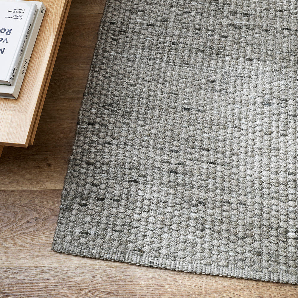 The light grey tones and heavily textured weave lifts any flat surface including wooden or tiled floors.