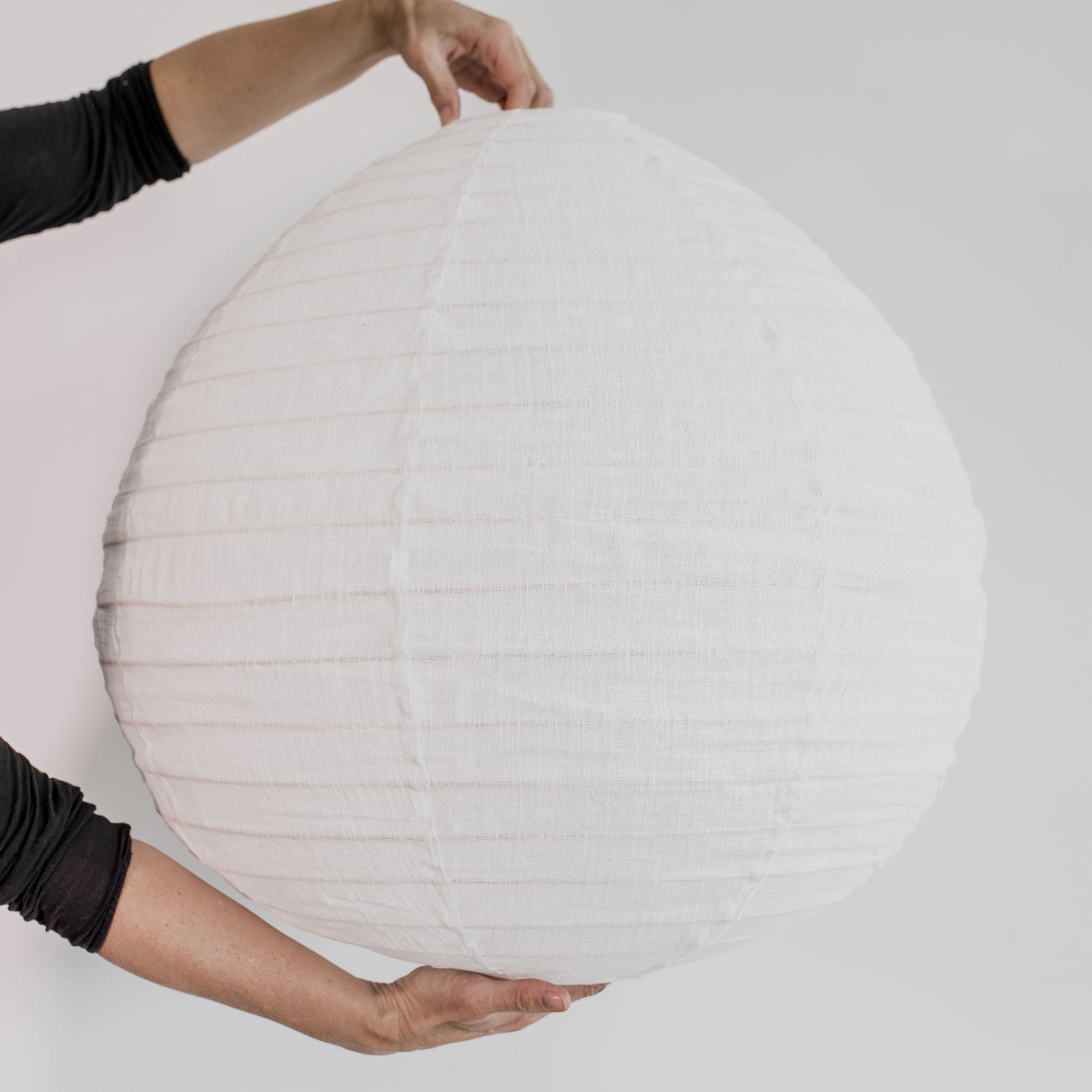 These pendants come collapsed, and once hung they naturally drop to a beautifully organic shape. They are lightweight and easy to transport.