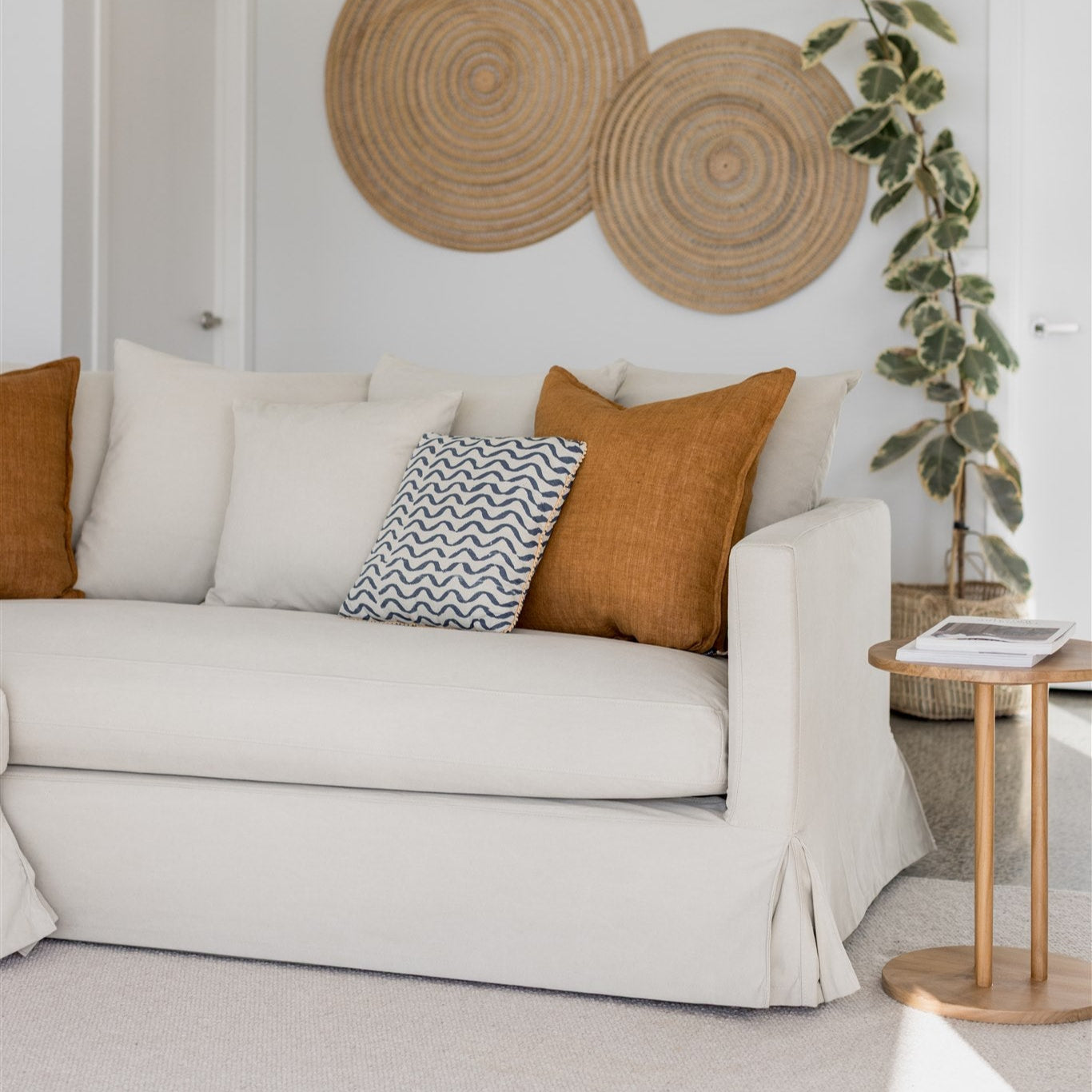 This loose cover sofa has been made with a hardwood frame and steel springs for comfort and support.